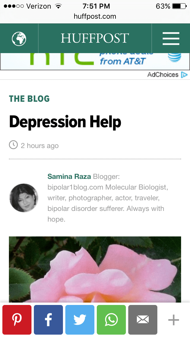 Posted on May 16, 2016 Posts Depression Help on Huffpost π http://m.huffpost.com/us/entry/9986656 Share this: Click to share on X (Opens in new window) X Click to share on Facebook (Opens in new window) Facebook Click to email a link to a friend (Opens in new window) Email More Click to share on Reddit (Opens in new window) Reddit Click to share on Pinterest (Opens in new window) Pinterest Like Loading... Related